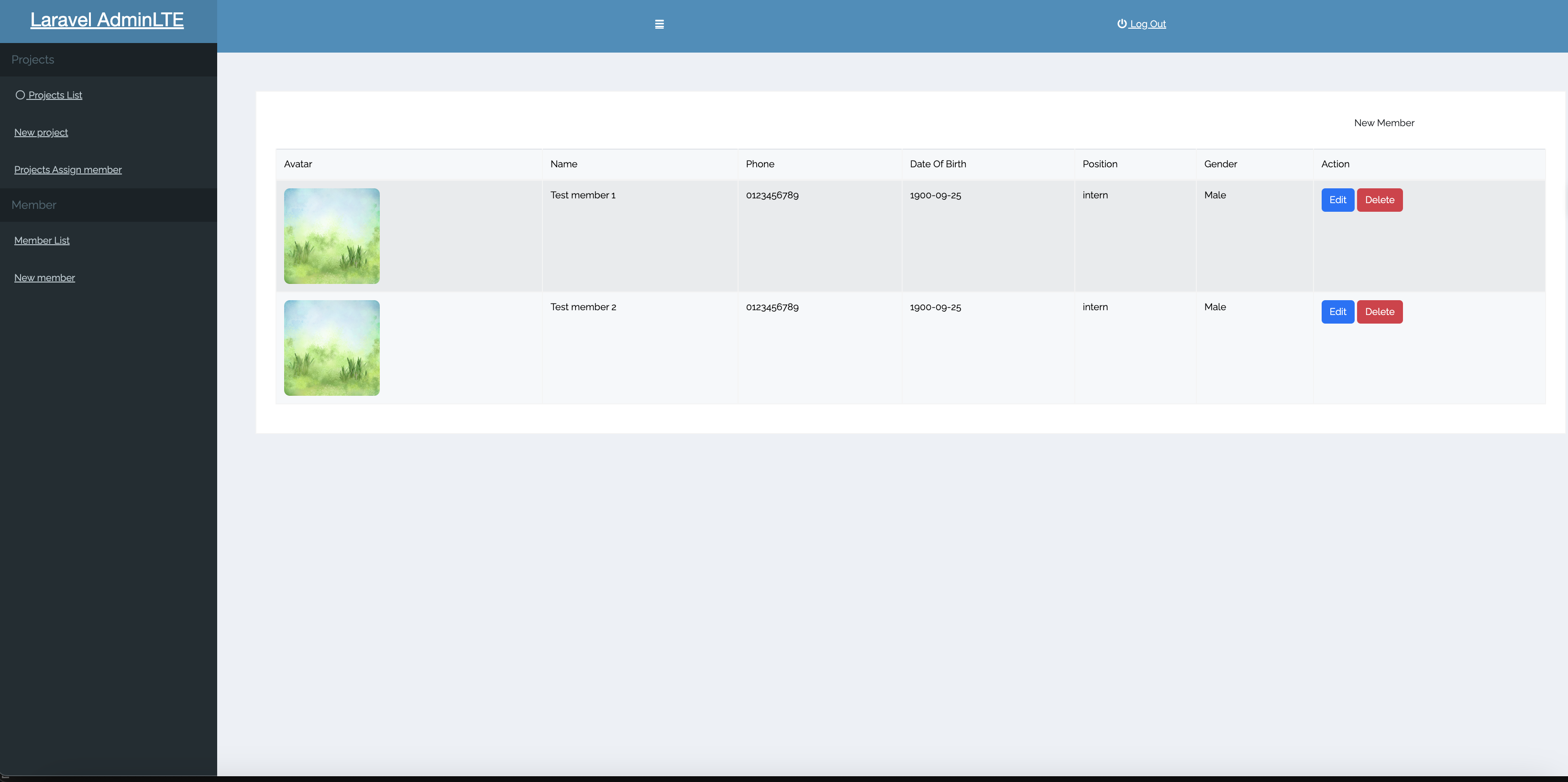 Laravel React AdminLTE Project management example code